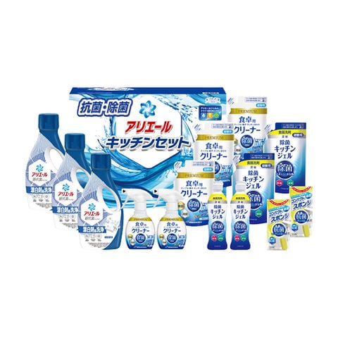 ■商品紹介内容/P&Gアリエールジェル:700g×3・除菌キッチンジェル:200ml×2・除菌キッチンジェル詰め替え用:160ml×2・食卓用クリーナー:260ml×2・食卓用クリーナー詰め替え用:250ml×3・コンパクトスポンジ×2