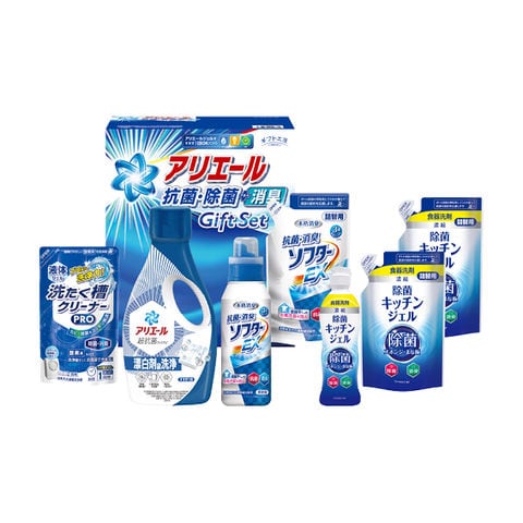■商品紹介内容/P&Gアリエールジェル:700g×1・除菌キッチンジェル:200ml×1・除菌キッチンジェル詰め替え用:160ml×2・抗菌消臭ソフターEX:350g×1・抗菌消臭ソフターEX詰め替え用:350g×1・液体洗たく槽クリーナーPRO:200g×1
