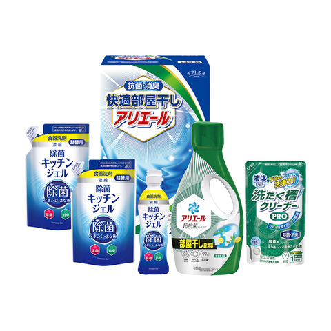 ■商品紹介内容/P&Gアリエールジェル部屋干し超消臭:700g×1・除菌キッチンジェル:200ml×1・除菌キッチンジェル詰め替え用:160ml×2・液体洗たく槽クリーナーPRO:200g×1