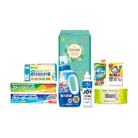 ■商品紹介内容/花王アタック抗菌EX:750g×1・P&G除菌ジョイコンパクト:170ml×1・持ち手付ポリ袋S:20枚×1・除菌キッチンクリーナー:24枚×1・ストックバッグM:7枚×1・フリーザーバッグM:5枚×1・泡クリアスポンジ×1・ピカ王ミニ×1