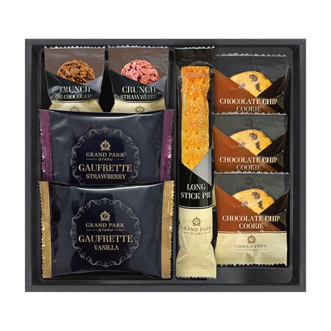 ■商品紹介内容/ロングスティックパイ×1・ゴーフレットバニラ×1・ゴーフレットストロベリー×1・チョコクランチミルク×1・チョコクランチストロベリー×1・チョコチップクッキー×3《卵・乳・小麦》
