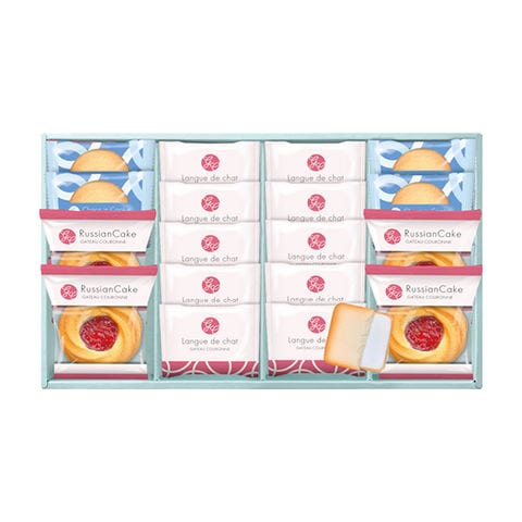 ■商品紹介内容/ロシアケーキブルーベリーサン×4・ラングドシャ×10・チョコインクッキー×4《卵・乳・小麦》