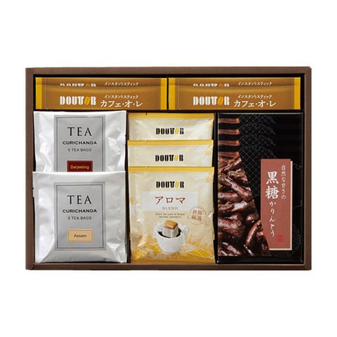 ■商品紹介内容/ドトールドリップコーヒーアロマブレンド:7g×3・ドトールカフェ・オ・レ:9.5g×4・ダージリン紅茶ティーバッグ:2.5g×5・アッサム紅茶ティーバッグ:2.5g×5・黒糖かりんとう:20g×4《乳・小麦》
