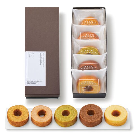 ■商品内容:セット内容:ミニバウム/5個(バニラ・チョコ・抹茶・ストロベリー・キャラメル各1個)