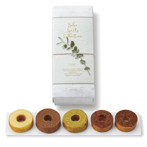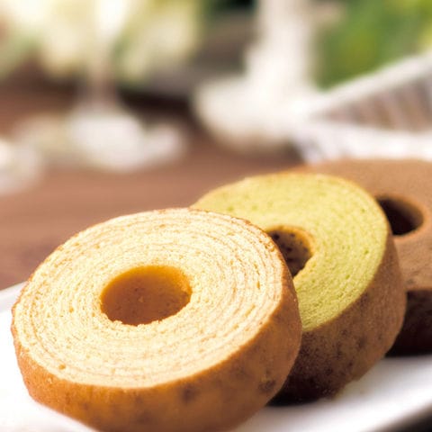 ■商品紹介:小さくても本格的な味わいのふんわりミニバウムクーヘンとほろ苦いキャラメリゼバウムクーヘンのアソートセット。 ■商品内容:セット内容:ミニバウム/3個(バニラ・チョコ・抹茶各1個)、キャラメリゼミニバウムクーヘン/2個(プレーン・ストロベリー各1個)