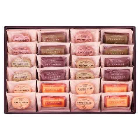 ■商品内容:ダックワーズ×12(プラリネ・ショコラ・抹茶×各4)、 フィナンシェ×12(プレーン・ショコラ・抹茶×各4)