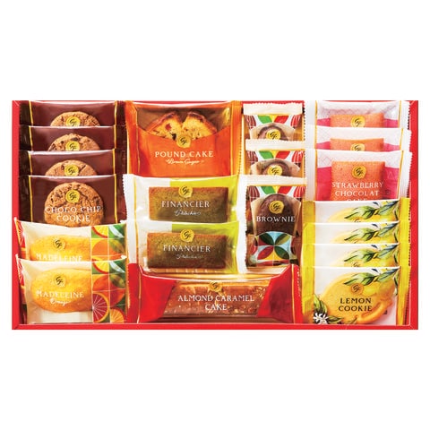 ■商品内容:ブラウンシュガーパウンドケーキ・アーモンドキャラメルケーキ×各1、オレンジマドレーヌ・ピスタチオフィナンシェ×各2、ブラウニー・ストロベリーショコラケーキ×各3、チョコチップクッキー・レモンクッキー×各4