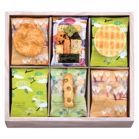 ■商品内容:ぷかぷか煎だし醤油×8、やわらか焼やき塩×6、ぐるめ探訪×3、アーモンドそふとやき塩×6