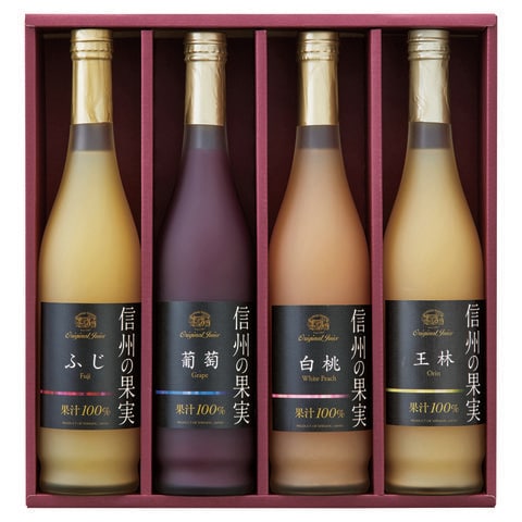 ■商品内容:りんごジュース(ふじ)500ml・葡萄ジュース500ml・白桃ジュース500ml・りんごジュース(王林)500ml×各1