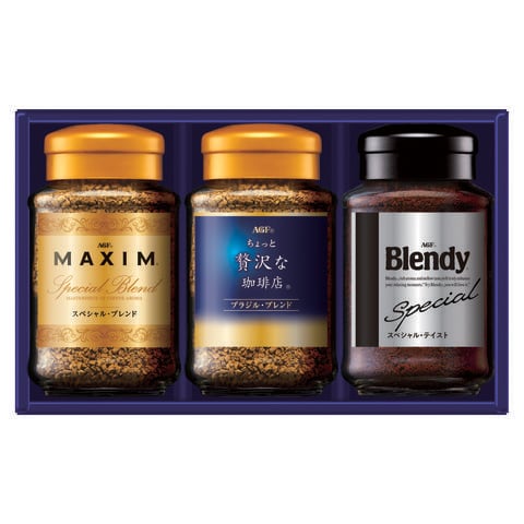■商品内容:「ちょっと贅沢な珈琲店」ブラジルブレンド65g・「マキシム」スペシャルブレンド65g・「ブレンディ」スペシャルテイスト70g×各1