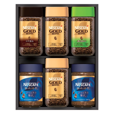 ■商品内容:ネスカフェ ゴールドブレンド80g・ネスカフェ香味焙煎ひとときの贅沢65g×各2、ネスカフェ ゴールドブレンドコク深め・ネスカフェ ゴールドブレンド香り華やぐ各80g×各1