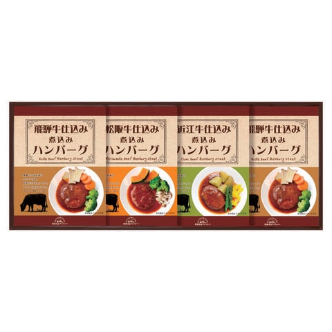■商品内容:松阪牛仕込みハンバーグ150g(固形量90g)×1、近江牛仕込みハンバーグ150g(固形量90g)×1、飛騨牛仕込みハンバーグ150g(固形量90g)×2