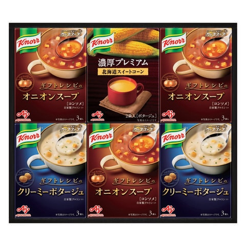 ■商品内容:クノール贅沢野菜北海道スイートコーン2袋、クノールカップスープギフトレシピ3袋入(クリーミーポタージュ×2、オニオンスープ×3)