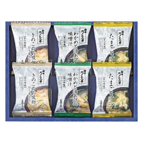■商品内容:たまごスープ・きのこのお吸物ひき雲仕立・わかめと油あげの味噌汁×各2