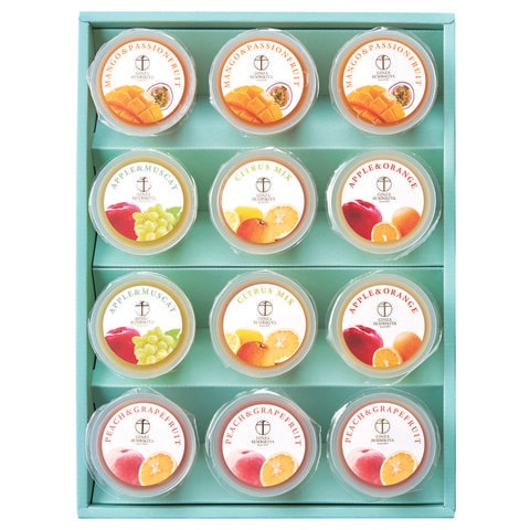■商品内容:マンゴー&パッション・ピーチ&グレープフルーツ各130g×3個、アップル&オレンジ・シトラスミックス・アップル&マスカット各130g×2個/計12個