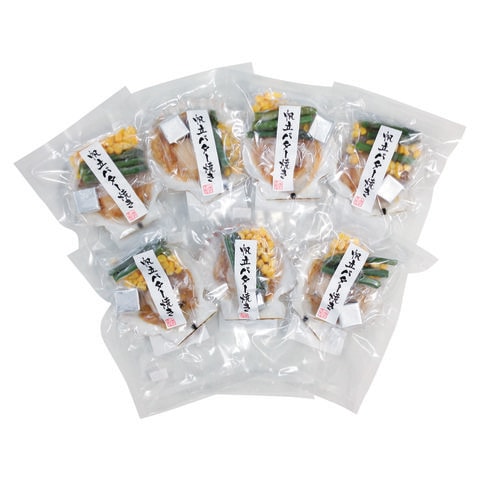 ■商品内容:北海道産 帆立バター焼きセット(帆立片貝1枚・コーン10g・アスパラガス10g・バター1個)×7