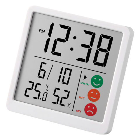■商品紹介:時計表示、温度表示、湿度表示、カレンダー表示、環境目安表示。マグネット・スタンド付き。ボタン電池1個使用(別売)。