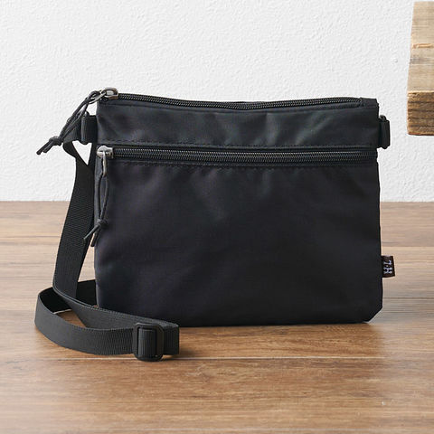 ■商品紹介:シンプルなデザインのサコッシュです。落ち着いた色合いで普段使いに便利なデザイン。ファスナー開閉式。内オープンポケット・前面ファスナーポケット×各1室。ショルダーベルト着脱不可(長さ調整可)。