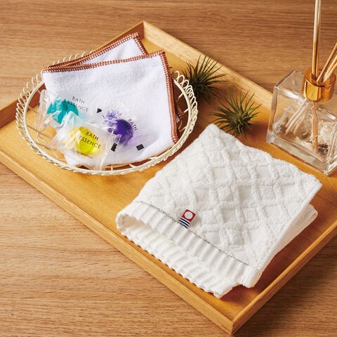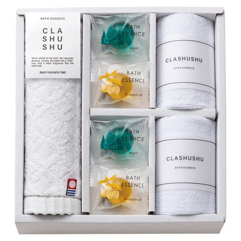 ■商品内容:バスエッセンス(ウッド)(8g)・バスエッセンス(グレープフルーツ)(8g)・マイクロファイバークロス(25×25cm)×各2、今治ウォッシュタオル(28×30cm)×1・今治ウォッシュタオル:綿100%、マイクロファイバークロス:ポリエステル80%・ナイロン20%