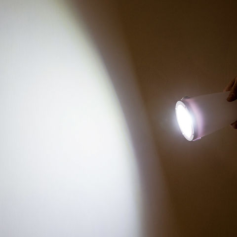 ■商品紹介:ライトを回転させればハンディライト、もしくはランタンとして使用できます。持って、置いて、吊るしてとシーンを選ばず活躍します。単4乾電池6本使用(別売)。