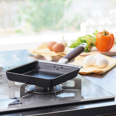 ■商品紹介:角型のフライパンとしてもお使いいただけるワイド玉子焼。200VIHにも対応。