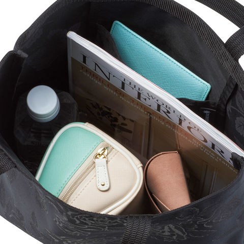 ■商品紹介:光沢あるバラ柄を織り込んだ高密度ジャガード生地を使用しており、とても軽くて丈夫です。フォーマル時、上品なサブバッグとしても重宝します。オープン開閉式。内吊ポケット×1室。