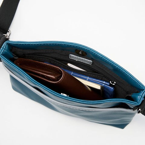 ■商品紹介:両手を空けて動ける便利なショルダーバッグは、バイカラーがアクセント。マグネット開閉式。内オープンポケット・内ファスナーポケット・外前面オープンポケット×各1室。ショルダーベルト着脱不可(長さ調整可)。