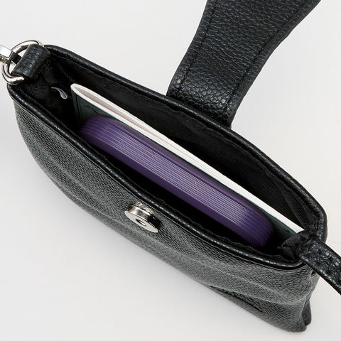 ■商品紹介:必要最低限のものが入れられるスマホポシェットです。裏についているポケットで収納力もあり、近場のお出掛けや旅行にぴったりです。マグネット開閉式。外オープンポケット×1室。ショルダーストラップ着脱不可(長さ調整可)。※縦16cm、横8cm、厚さ1cm程度までのスマートフォンに対応。