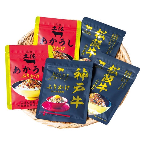■商品内容:神戸牛ふりかけ(30g)×1、松阪牛ふりかけ(30g)・土佐あかうしふりかけ(30g)×各2