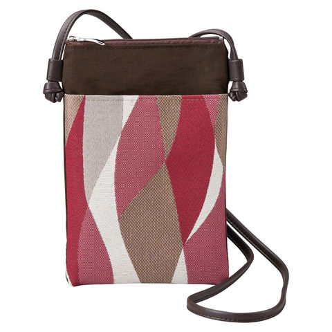 ■商品紹介:奈良時代から尾張地域(今の愛知県)で発展してきた尾州織の生地を使用しています。前面のポケットがスマホの出し入れに便利で、一般的な長財布も本体に収納可能です。ファスナー開閉式。前面オープンポケット×1室。ショルダー紐着脱不可(長さ調節不可)。