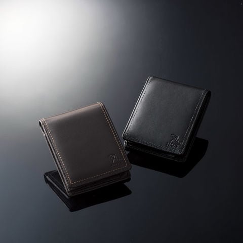 ■商品紹介:シンプルなでデザインで羊革を使用し、柔らかな仕上げに。札入×2室、カード入れ・ポケット×各4室、ホック開閉式小銭入れ×1室。