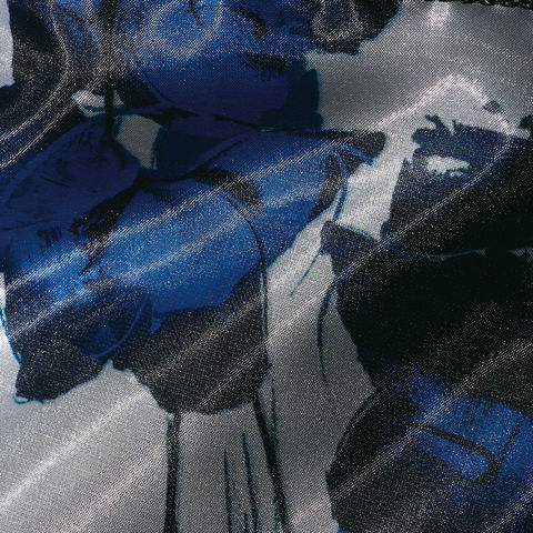 ■商品紹介:オーガンジー生地の華やかで美しい転写プリントは、染色でありながら無公害で水を一切使用しない画期的なもので「環境に優しいエコロジープリント」と言われています。内オープンポケット×2室。持ち手立上り約19cm。
