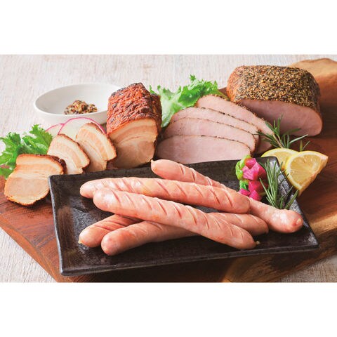 ■商品内容:つるし焼豚(約170g)・ペッパーポーク(約310g)・あらびきウインナー(約150g)×各1