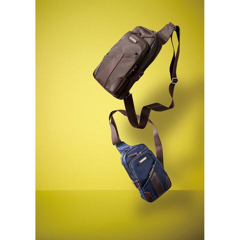 ■商品紹介:「YUMI KATSURA」のメンズライン。ちょっとしたお出掛けや散歩に出かけるときに重宝します。手が空くので自転車に乗る時も大変便利です。ファスナー開閉式。内オープンポケット×1室、前面ファスナーポケット×2室。