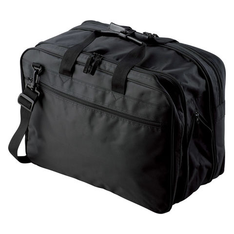 ■商品紹介:ファイルはB4サイズ、用紙はA3まで収納可能な大きめサイズのビジネスバッグ。荷物に応じて側面のファスナーでマチ幅を14.5cmから23cmに変更できます。メイン収納は4つのポケットで仕分け収納が可能。ファスナー開閉式。内ファスナーポケット×1室、メッシュオープンポケット・オープンポケット・面ファスナー付ポケット・ペン差し×各2室、外ファスナーポケット×2室。底鋲(ゴム素材)×4。ショルダーベルト(着脱可・長さ調節可)付。
