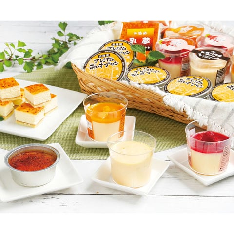 ■商品内容:焼きプリンケーキ(100g)・北海道プリン(100g)・木苺プリン(100g)・マンゴープリン(100g)×各3、あいすプリン(65g)×6