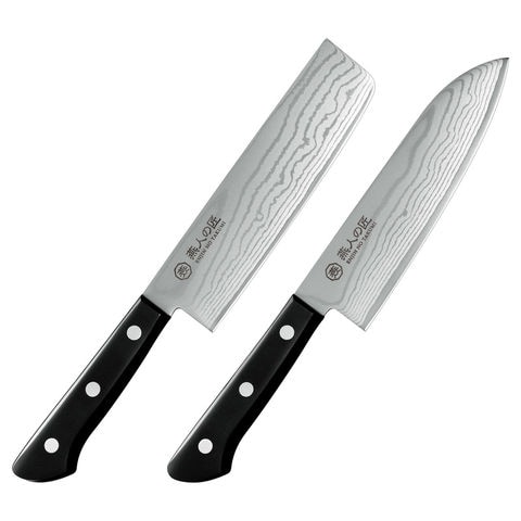 ■商品内容:三徳包丁(刃渡17cm)・菜切包丁(刃渡16.5cm)×各1・刃:DPダマスカス複合材(心材:コバルト合金)、ハンドル:積層強化材
