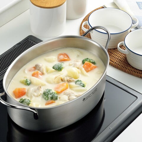 ■商品紹介:熟練の技巧、信頼の日本製。鍋の本体は、熱伝導性に優れたアルミニウムを耐久性と保温性に優れたステンレス鋼でサンドした3層構造(3LAYERS)。IHはもちろん、ガス火やオーブン調理、アウトドアでの焚火や炭火にも対応します。ハンドルと蓋をオールステンレス製にすることで割れる心配もなく、耐久性に優れお手入れも簡単で、そのままオーブンに入れての調理や食洗機にも対応します。家庭用食洗機使用可。