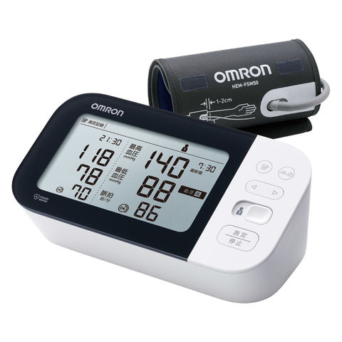 ■商品紹介:最新の測定結果と過去のデータを簡単に比較。e-フィットカフ、スマートフォン対応、比較画面、早朝高血圧確認機能、血圧確認機能、体動お知らせ、バックライト、朝/晩週平均確認機能、カフぴったり巻きチェック、不規則脈波お知らせ、メモリ100回×2人。専用カフ・専用ACアダプタ・収納ソフトケース×各1・お試し用単3乾電池4本付。医療機器認証番号:301AABZX00021000