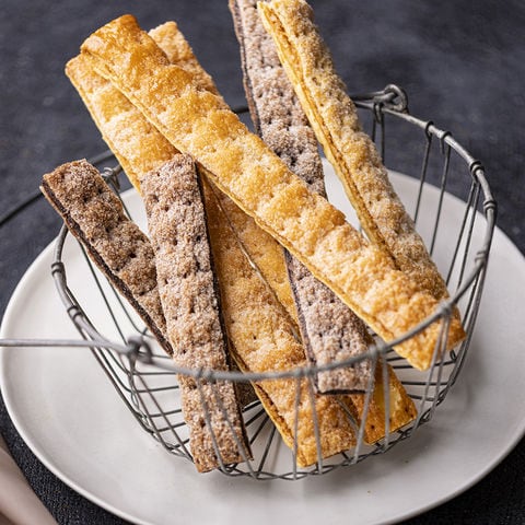 ■商品紹介:何層にも重なったパイ生地にほろ苦いショコラ生地や甘い香りのキャラメル生地を丁寧に重ね合わせ、香ばしく焼き上げました。サクサクとした軽やかな食感と、上品な甘さと香りが広がる大人のためのスティックパイです。 ■商品内容:セット内容:スティックパイ/6本(ショコラ・キャラメル各3本)