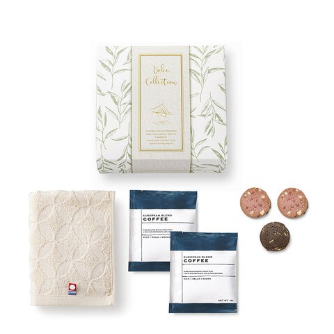 ■商品紹介:引菓子として王道の人気を誇るクッキー&コーヒーに、品質の高さに定評のある今治タオルをセットにしました。使いやすいサイズのウォッシュタオルは縁起のよい七宝柄です。 ■商品内容:セット内容:ウォッシュタオル/1枚(約34×30cm) クッキー/3個(いちごミルク2個・ココア1個)、ドリップ式レギュラーコーヒー/8g×2袋