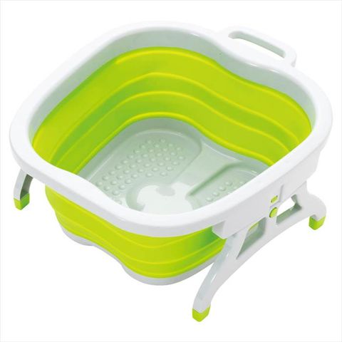 ■商品紹介:お部屋で簡単に足湯を楽しむことができ、底の突起が足裏のツボを心地よく刺激してくれます。使わないときはコンパクトに折りたためます。つけ置き洗いやペットのバスタブとしても便利。