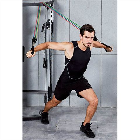 ■商品紹介:5種の強度のゴムバンドで、自分に合った適度な負荷をかけたトレーニングやストレッチができます。便利なドアストッパー付きで一人でもチューブトレーニングができます。