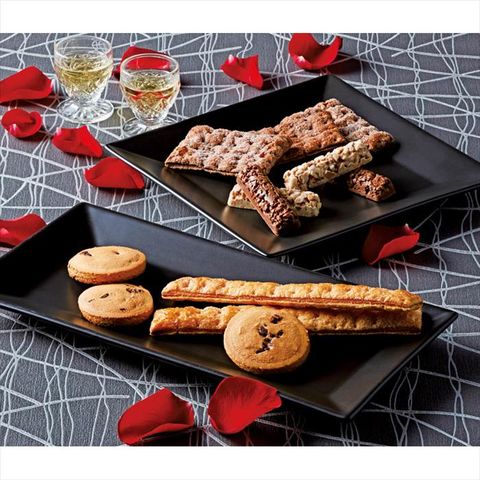 ■商品紹介:ホッとしたひと時を贈る、おしゃれなティータイムを演出します。大きめのチョコチップを練り込んだクッキーなどバラエティ豊かな甘いセットです。