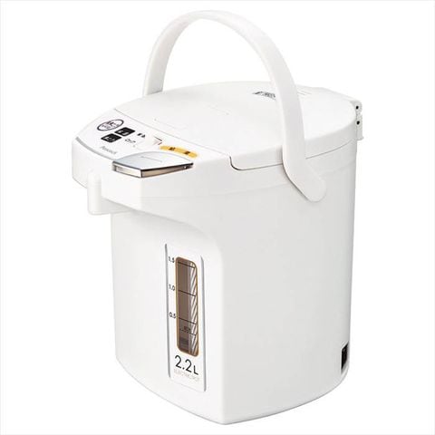 ■商品紹介:使いやすさを追求した『エルゴノミクス』デザインを採用。大きな給湯ボタンで注ぎやすい。●電動給湯●再沸とう●空だき防止●カルキとばし●上ぶた着脱式