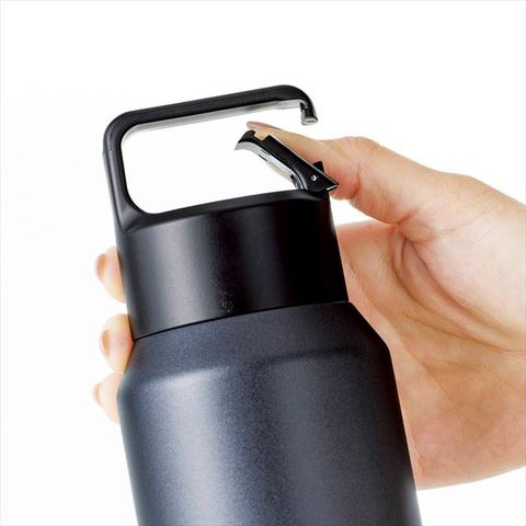 ■商品紹介:炭酸飲料を冷たいまま持ち運べる、真空2重構造のステンレスボトル。蓋部分のガス抜き構造により、ビール、炭酸水などを冷たいまま持ち運び可能。持ち運びに便利なカラビナ付きハンドル。氷を入れても500mlドリンクが入る、大容量600mlサイズ。