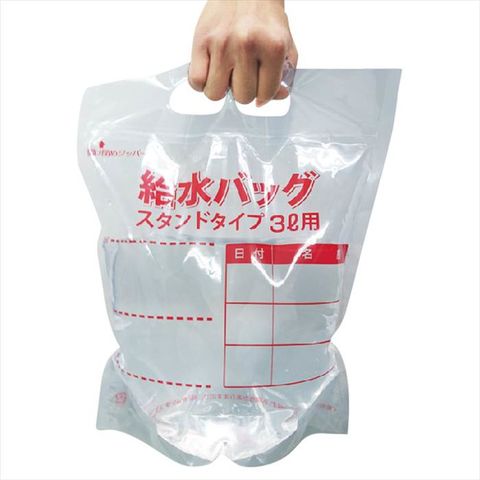 ■商品紹介:立てて保管が出来る給水バッグです。緊急時に必要な水の確保に便利です。かさばらないから保管にも便利で、さっと取り出しいつでもご利用頂けます。キャンプや釣りなどのレジャーにも便利です。