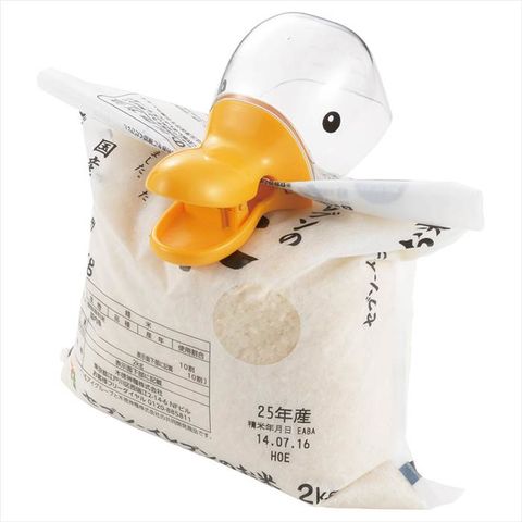 ■商品紹介:お米の計量と袋を閉じるをサッと手軽に。かわいいポップなデザイン。袋をかわいく閉じられます。約一合分をすくえます。