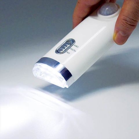 ■商品紹介:人が通ると反応するセンサーライトと、いざという時に役立つ常備灯が一体となった防犯防災にも役立つライトです。