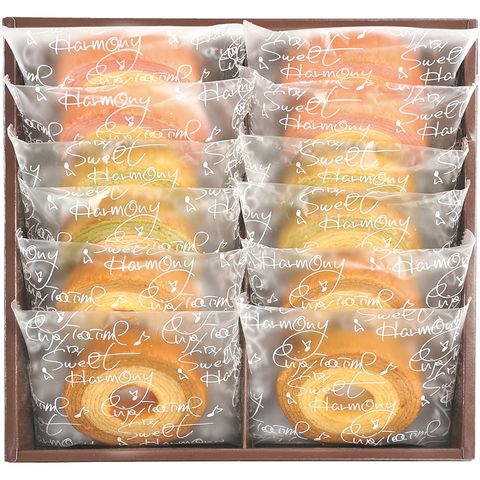 ■商品紹介: 3種類の2層バームクーヘンが入ったカラフルなセット。